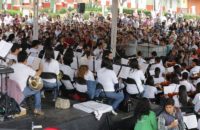 Como parte del Sexto Encuentro Internacional de Orquestas Juveniles, representantes de 19 agrupaciones del país así como de Venezuela y Cuba, ofrecieron con gran éxito un concierto de gala en la Plaza Benito Juárez, que lució pletórica